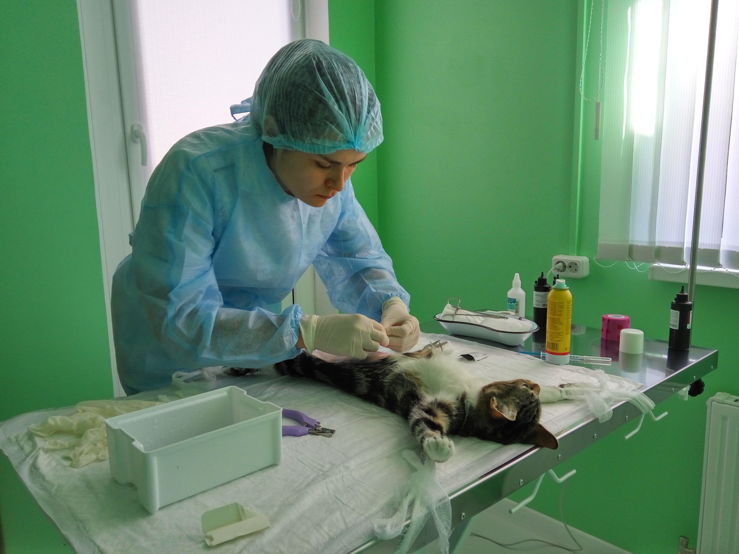 После операции, какое-то время питомец еще будет находиться в состоянии наркоза. Поэтому предварительно нужно поместить его на пеленку в случае происхождения мочеиспускания. Когда операция пройдет, вам будет необходимо обрабатывать рану питомцу средствами, которое вам порекомендует врач. Если вы заметите, что ваш любимец не идет на поправку, а чувствует себя только хуже, вам нужно будет связаться с нашей клиникой, получить рекомендации и вызвать врача на дом.